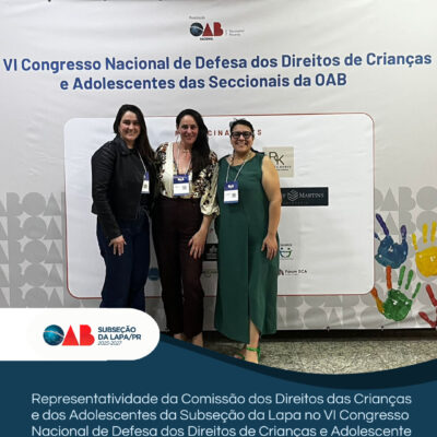 No dia 23/09, a Comissão dos Direitos das Crianças e dos Adolescentes da Subseção da Lapa, representada pela Presidente Ana Karina Azambuja, esteve presente no VI Congresso Nacional de Defesa dos Direitos da Criança e do Adolescente, realizado no auditório da OAB Paraná. O encontro foi marcado por diálogos e...