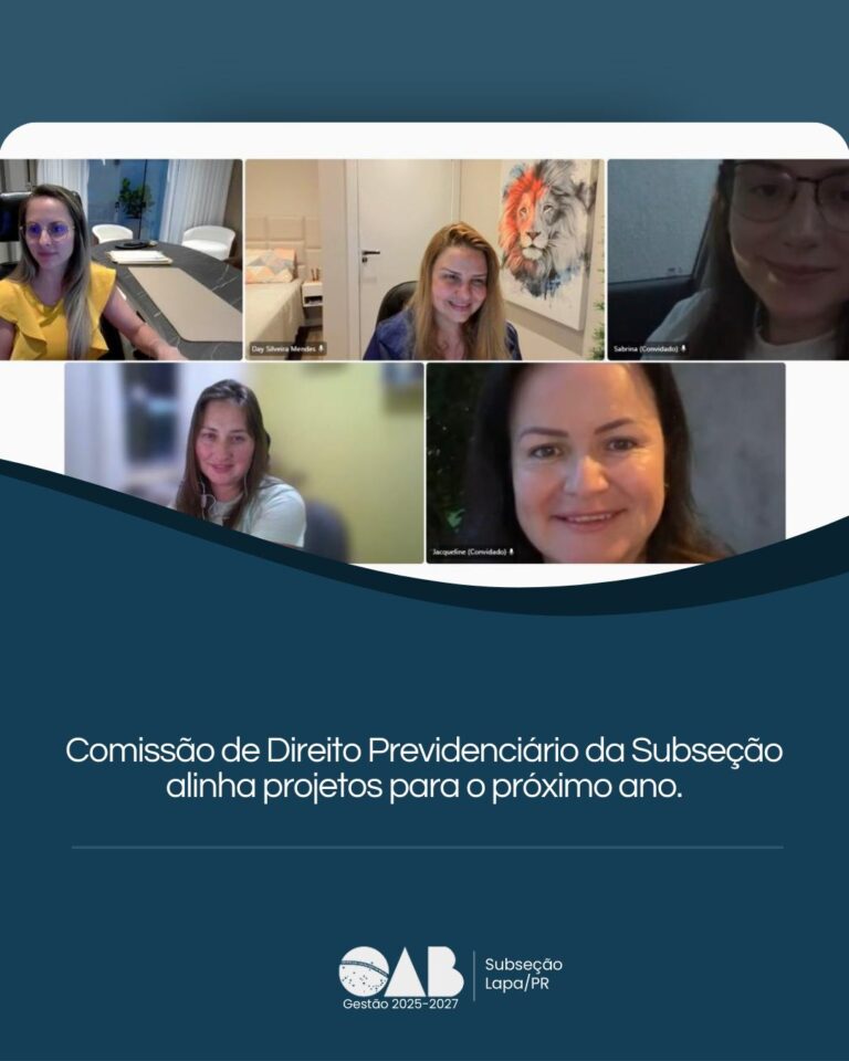 No fim da tarde de ontem, 1º/12, a Comissão de Direito Previdenciário se reuniu de forma virtual para alinhar projetos e ações para o ano de 2026, valorizando e fortalecendo a advocacia previdenciária da Subseção.