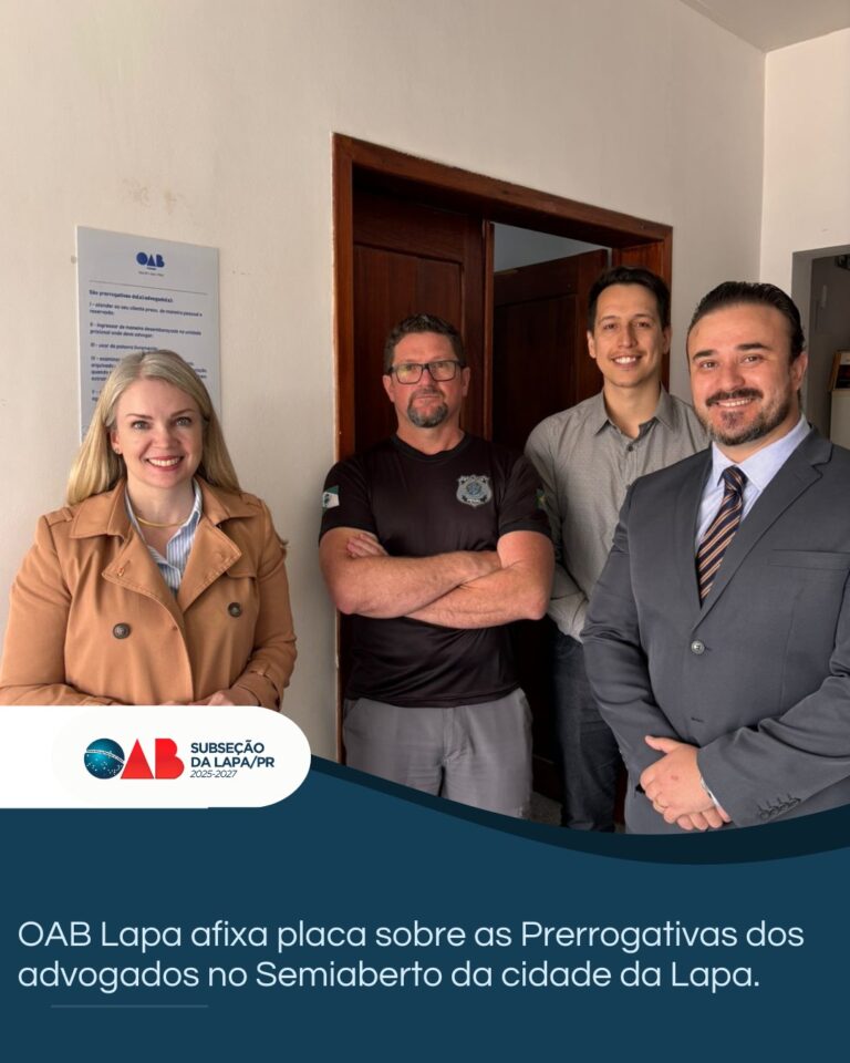 Nesta manhã, dia 25/11, a OAB Subseção da Lapa realizou a instalação de uma placa informativa no Setor de Regime Semiaberto da cidade da Lapa, reforçando a importância e o respeito às prerrogativas profissionais da advocacia.