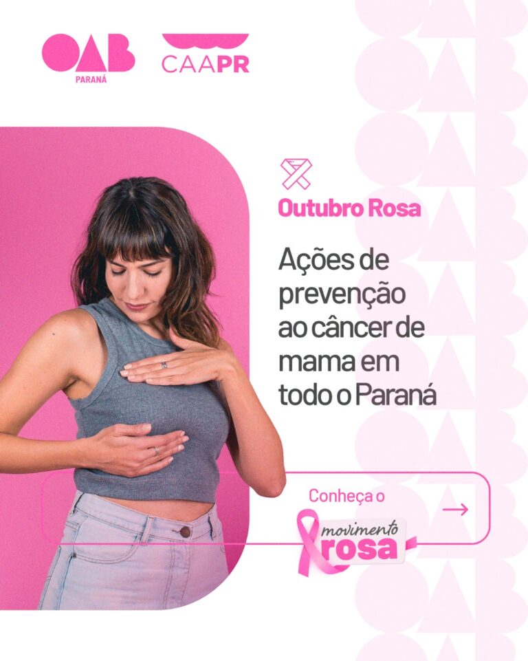 A CAA-PR, junto com a OAB Paraná e suas comissões, abraça essa causa com o Movimento Rosa, promovendo ações em todo o estado: exames facilitados, palestras, atividades coletivas, cartilhas e encontros on-line para conscientizar e apoiar a advocacia.