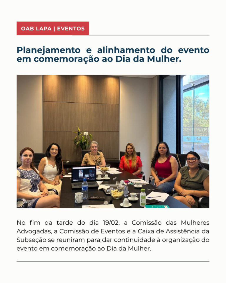 No fim da tarde do dia 19/02, a Comissão das Mulheres Advogadas, a Comissão de Eventos e a Caixa de Assistência da Subseção se reuniram, de forma híbrida, para dar continuidade ao planejamento do evento em comemoração ao Dia da Mulher.